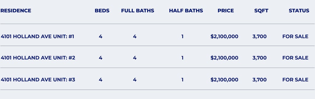 Based on the architectural plans designed by Studio MAS Architects, each Holland Avenue townhome spans over 3,700 square feet across three thoughtfully designed levels, blending functionality with elevated urban design.